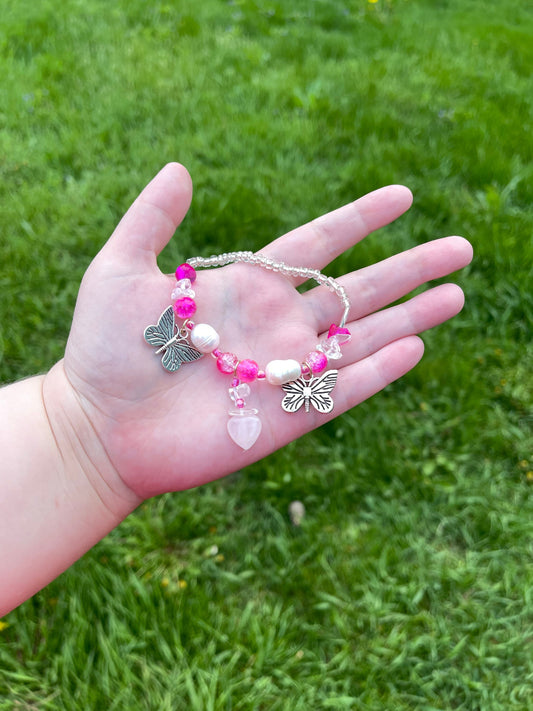 Flutter Hearts - Butterfly Pearl Rose Quartz Pink Bracelet
