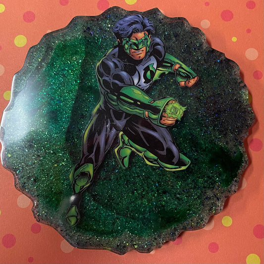 Green Guardian Comic Book Resin Coaster