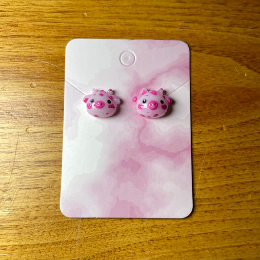 Strawberry Pink Cow Stud Earrings