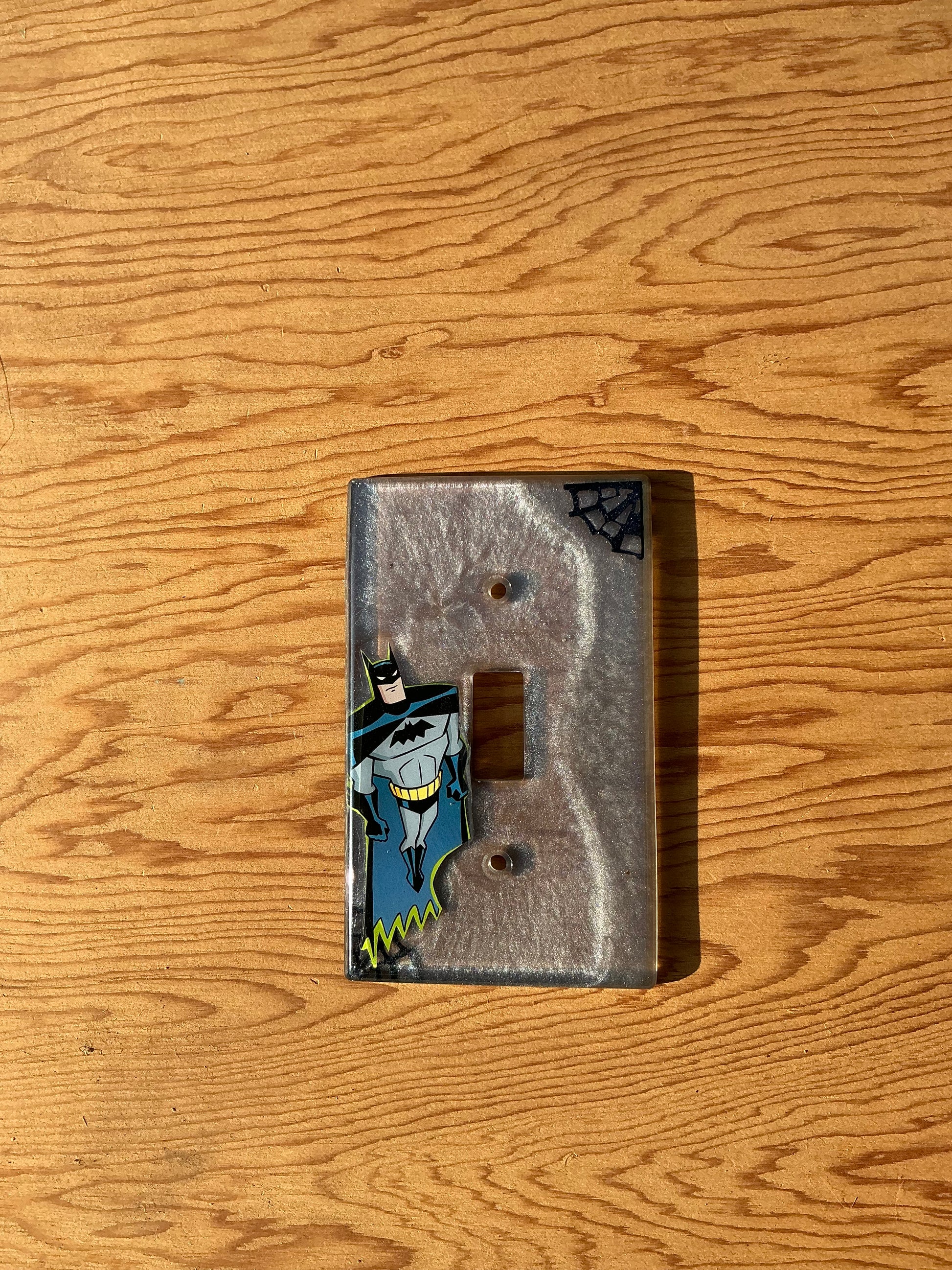 Made with recycled comic book clippings and non toxic epoxy resin.
