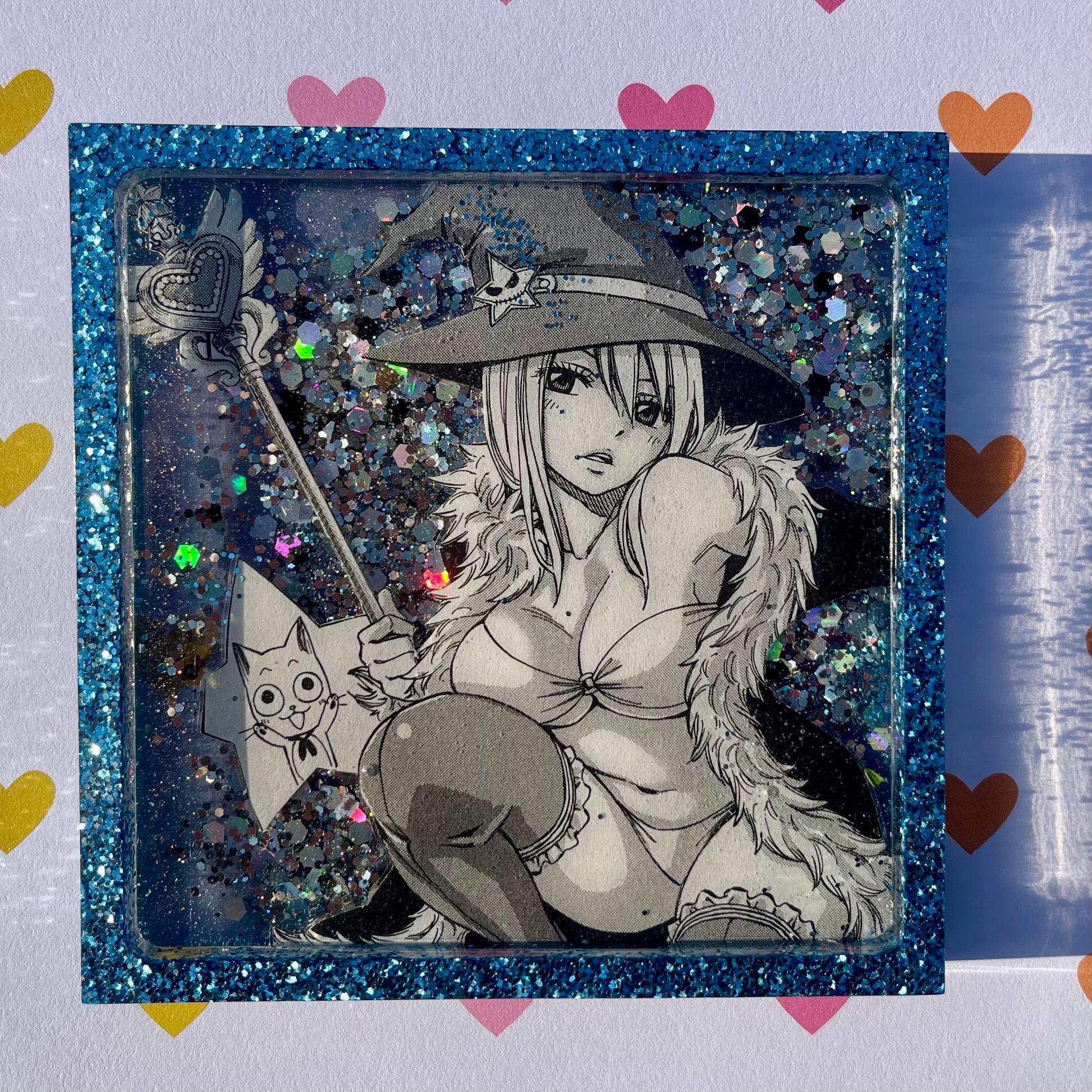 As always my one of a kind pieces are made from non-toxic epoxy resin and recycled clippings from comic books and manga. See my resin care page for more information!