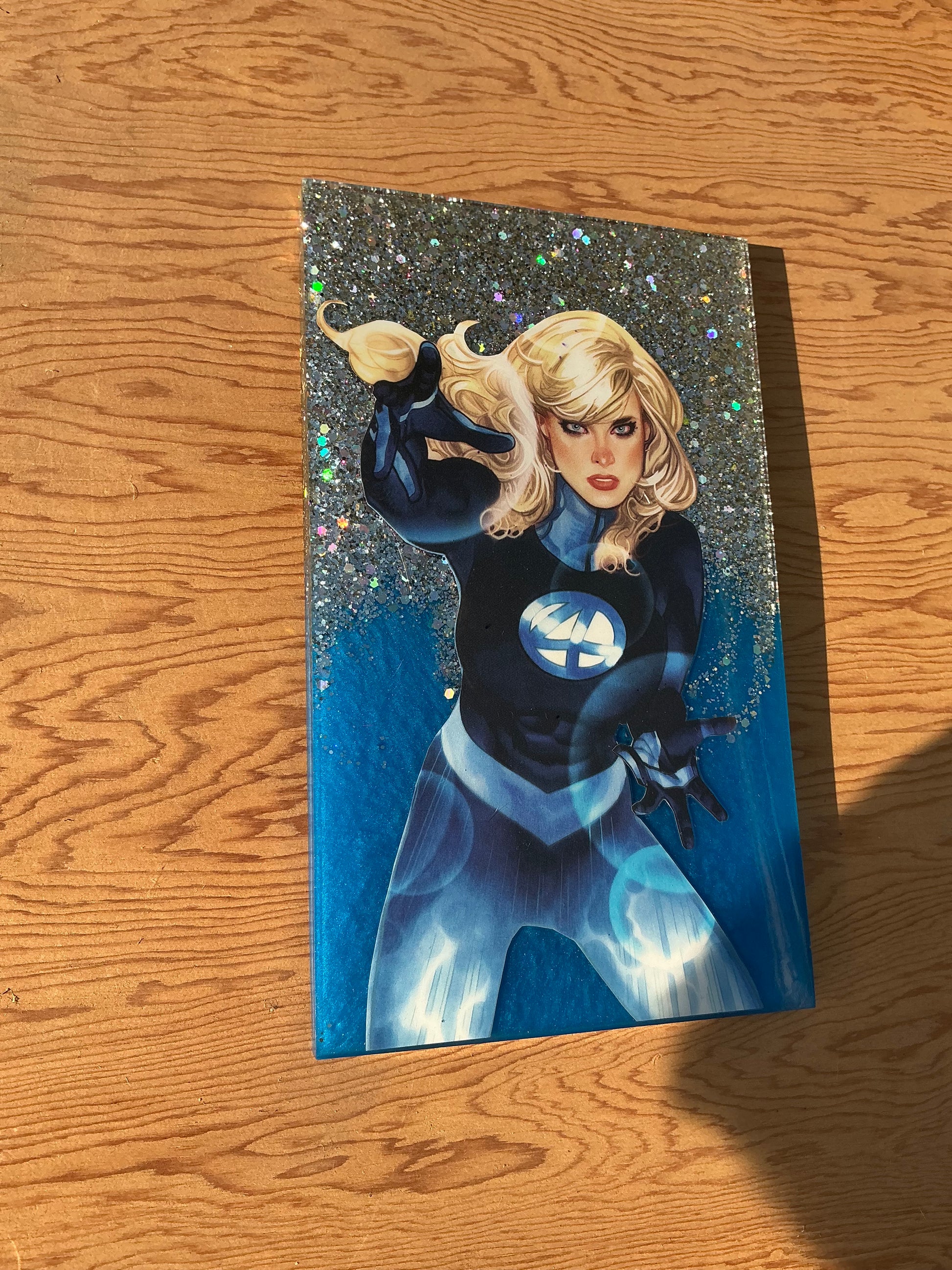 A tray without ridges that would be totally awesome put on a wall or used for a decor piece!!! Made with recycled comic book clippings and non toxic epoxy resin.